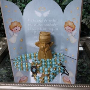 1 terço pp com medalha de anjo pedras azuis 8mm